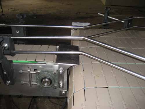 板鏈輸送機(jī)以標(biāo)準(zhǔn)頂板鏈為承載面,由馬達(dá)減速機(jī)為動(dòng)力傳動(dòng),運(yùn)行在專用導(dǎo)軌中,根據(jù)工藝流程不同,頂板鏈分為轉(zhuǎn)彎及直線型。其材質(zhì)為碳鋼、不銹鋼、熱塑鏈,根據(jù)您的產(chǎn)品的需要可選取不同寬度、不同形狀的頂板來(lái)完成直線、轉(zhuǎn)彎、升降等要求。板鏈輸送機(jī)廣泛應(yīng)用于食品、罐頭飲料、化妝品洗滌產(chǎn)品等行業(yè)。